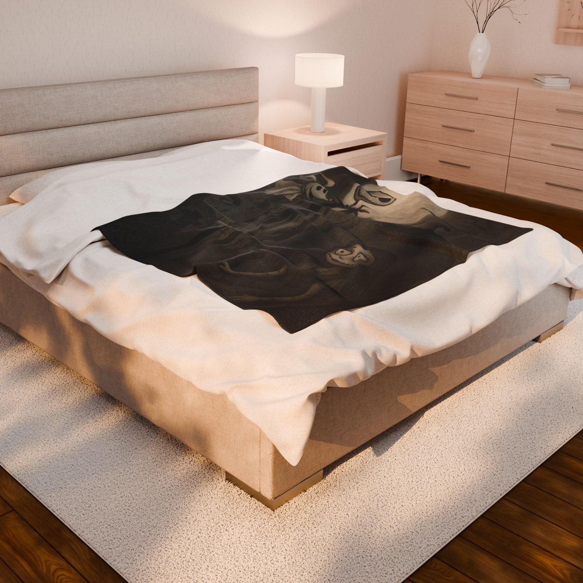 Wrap yourself in comfort with this luxurious velveteen plush blanket. Ideal for cozy nights in, movie marathons, or adding a touch of whimsy to your decor, this blanket combines softness with a unique design that sparks joy and nostalgia. Perfect for those who cherish unique and artistic home accessories, it fits seamlessly into any living room or bedroom. Great for gifts on holidays like Halloween and Christmas, as well as cozy gatherings and celebrations. This blanket is designed for adults looking for style, comfort, and warmth in their homes.